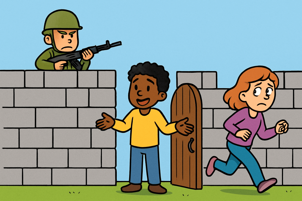 De ene persoon bouwt de muur hoger en zet een leger neer om de vijand die hen wijst op verantwoordelijkheid neer te schieten. De persoon verwacht erkenning van een ander, maar geeft geen erkenning aan die ander. Dit is de vechter.