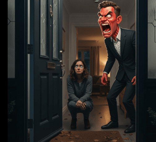 Jon schreeuwt naar haar: “Ik had je gezegd dat je de bladeren moest opruimen! Waarom heb je het niet gedaan? Ik werk mij kapot en als ik jou iets vraag, dan kan je het niet eens. Wat een hopeloze vrouw ben je! Je kan echt niets. Wat gaan de buren nu wel niet denken?”