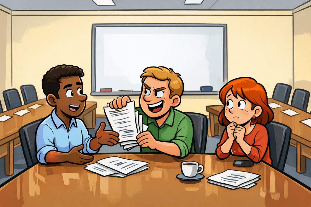 Het moment dat Jonathan David de kamer zag binnenlopen, opende hij direct het gesprek: “David, kom verder! Ik zag dat je gisteren een presentatie had gegeven. Dat was echt heel slecht werk van je. Het zag er echt niet goed uit. Het was te moeilijk geschreven en niemand snapte het. Tanya, jij zag het toch ook?”