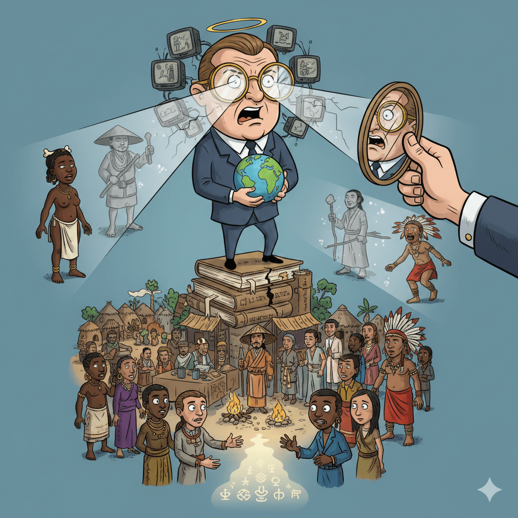 Er is een verhaal verteld door de ogen van een buitenstaander, die kijkt naar andere volkeren alsof die andere volkeren niet beschaafd zijn. Door deze bril bezien ontstaat het beeld dat deze andere volkeren alleen goed zijn als ze de normen en waarden van de buitenstaander overnemen en de eigen normen en waarden vergeten, want die zijn toch achterlijk.